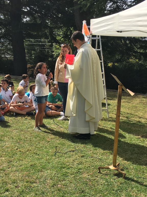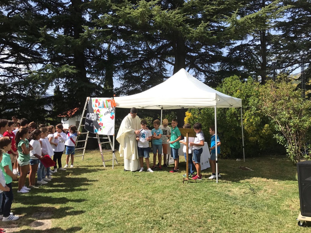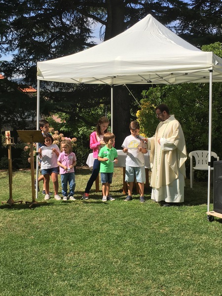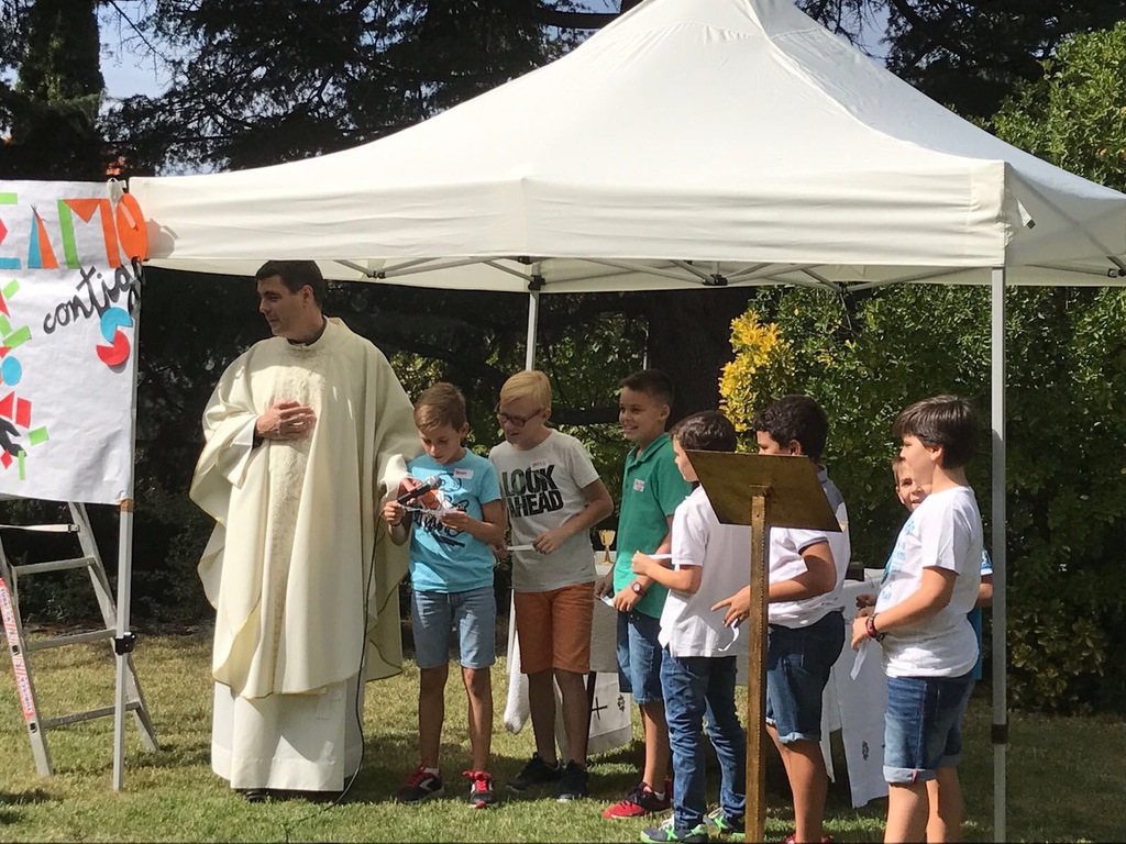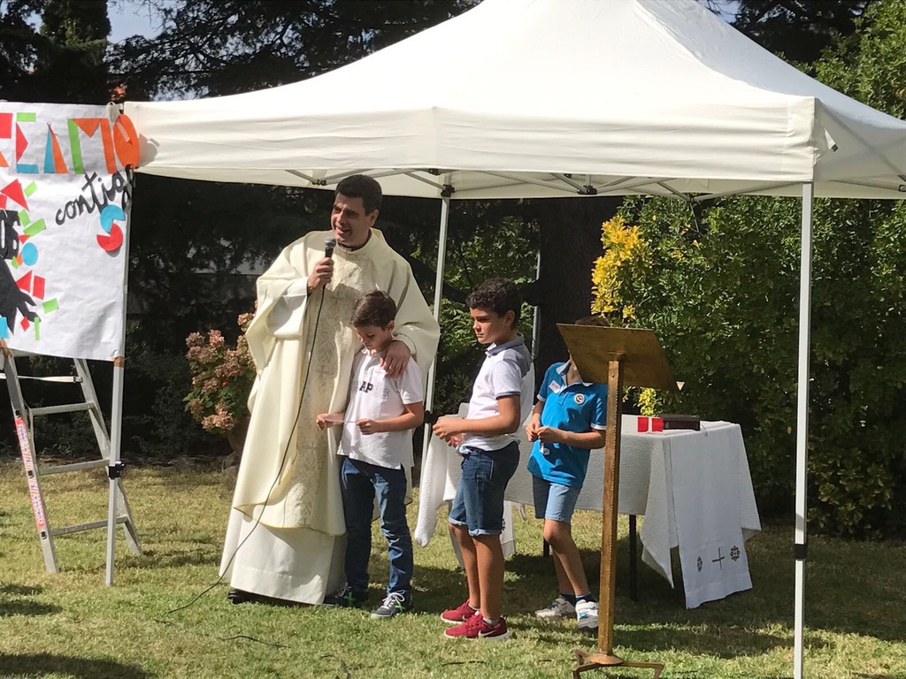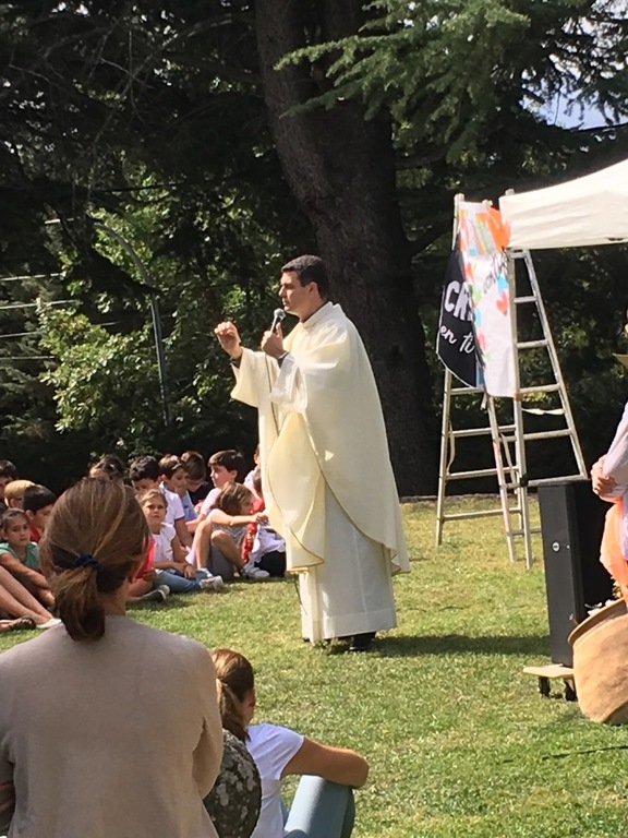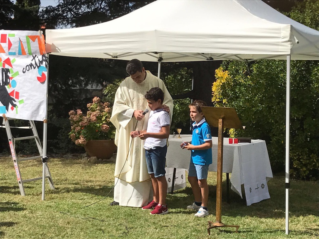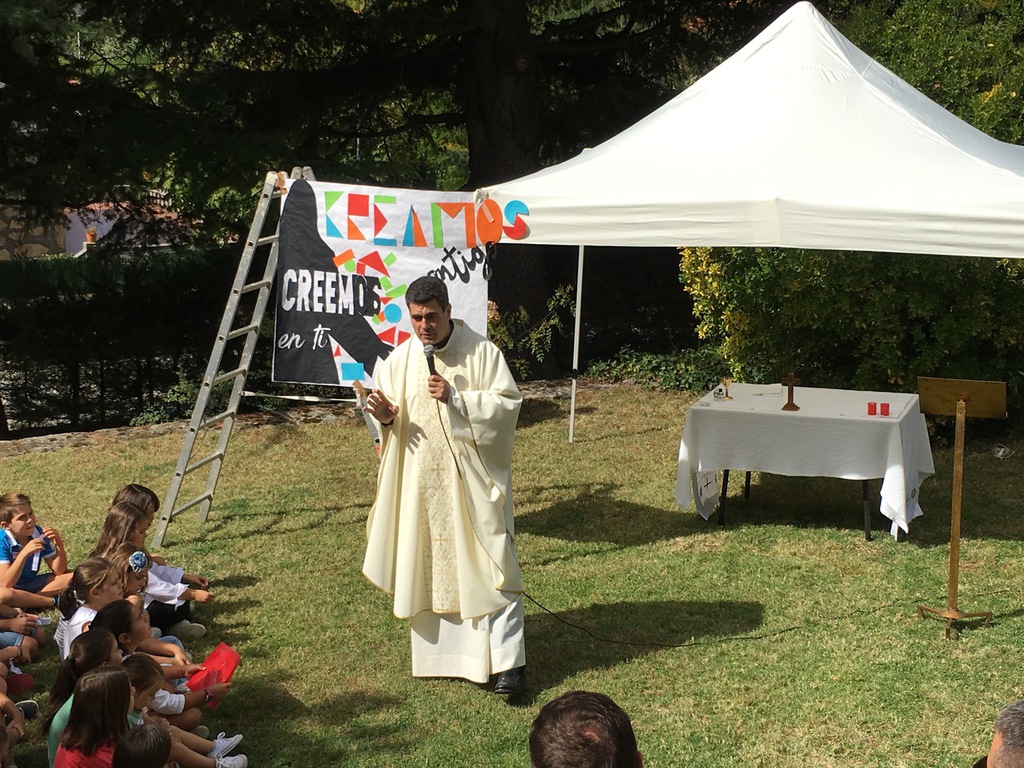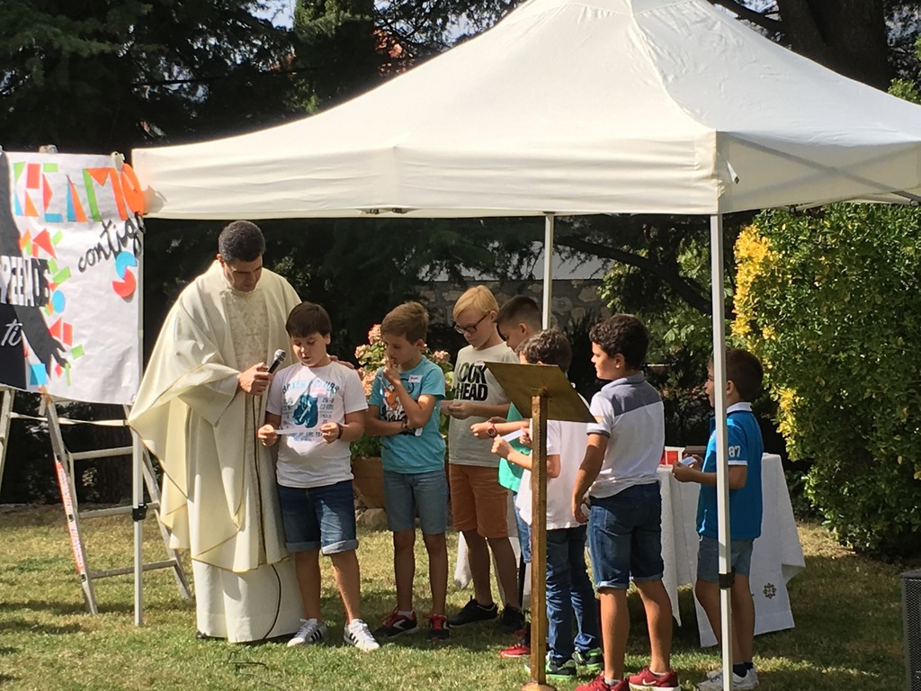 Este año el Padre Fernando, de la parroquia San Juan Crisóstimo celebro la Eucaristía, muy dedicada a nuestros pequeños y no tan pequeños, les conto la historia de “Pier Giorgio”, la cual escucharon con gran atención, también contaros, que ya vamos consiguiendo que alumnos de la ESO nos acompañen y vivan con nosotros este día tan divertido.