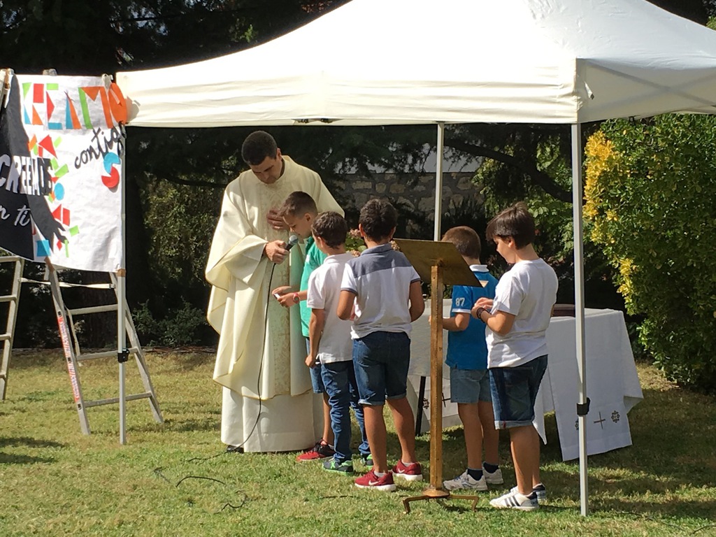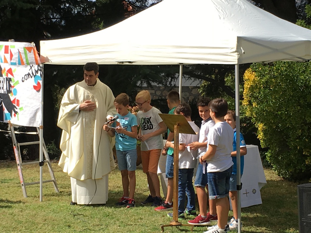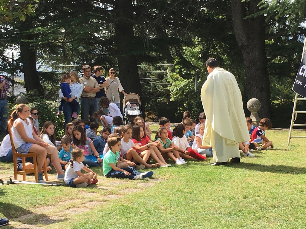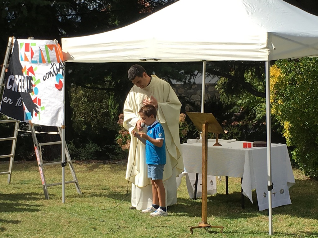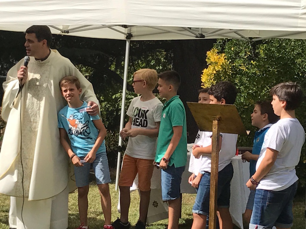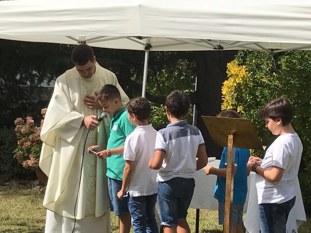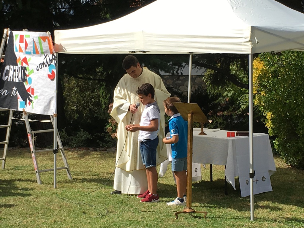 Este año el Padre Fernando, de la parroquia San Juan Crisóstimo celebro la Eucaristía, muy dedicada a nuestros pequeños y no tan pequeños, les conto la historia de “Pier Giorgio”, la cual escucharon con gran atención, también contaros, que ya vamos consiguiendo que alumnos de la ESO nos acompañen y vivan con nosotros este día tan divertido.
