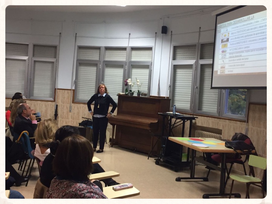 Dentro del marco de la Escuela de Padres, el viernes 22 de enero, acudió al colegio la hermana Lourdes Badénes stj. para impartir una sesión sobre cómo “Educar en Interioridad” a los hijos. Durante la exposición planteo numerosas preguntas: ¿Qué es la interioridad?, En un mundo que nos invita a mirar continuamente hacia fuera ¿qué sabemos de nuestro mundo interior?, ¿dónde podemos buscar el conocimiento de nosotros mismos? Conocerse a uno mismo supone entrar en el castillo interior, “ser capaces de caer en la cuenta de lo que pasa y saber qué nos pasa con lo que pasa es educable”. A partir de ahí, fue desarrollando una serie de pautas para hacer pensar, para ayudarnos a profundizar en el conocimiento propio y que podamos ayudar a nuestros hijos en el mismo sentido.