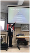 Olga empezó interactuando con los asistentes para así mostrarnos la pirámide de Maslow, en la que basó toda la charla pues es la que explica la jerarquía de las necesidades humanas.