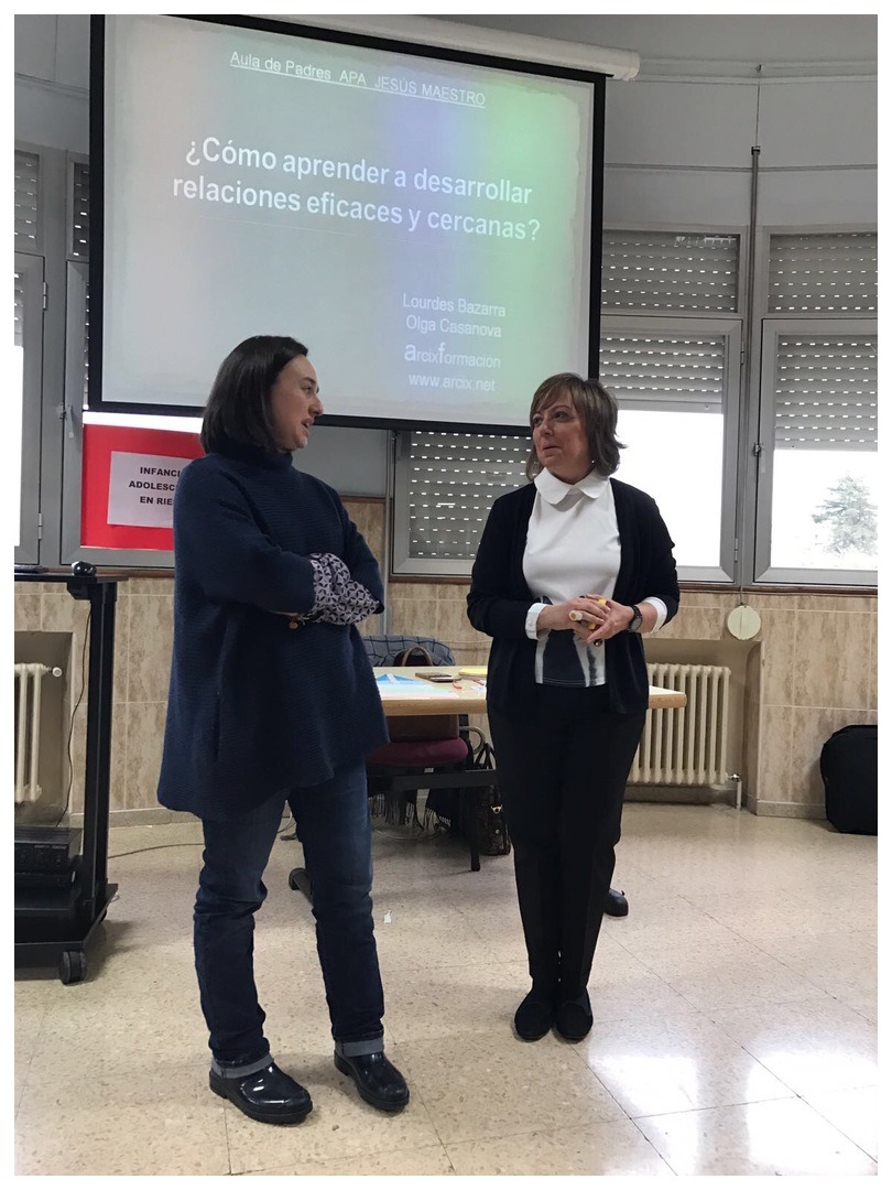 El viernes 19 de febrero, Olga Casanova, de ARCIX, vino al colegio para mantener una sesión del Aula de padres dirigida esta vez a los que tenemos hijos en los cursos superiores. Además de una gran asistencia de padres, acudieron también algunos alumnos de bachillerato.